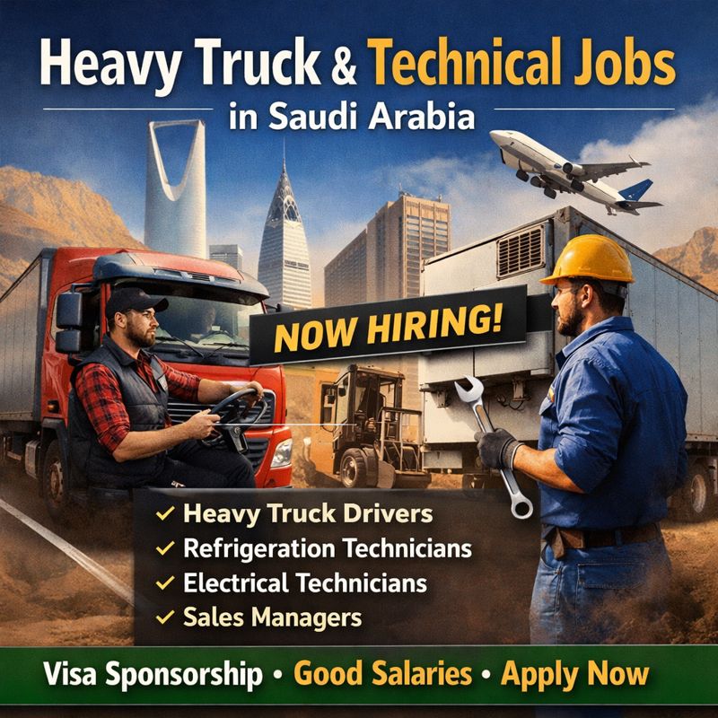 Saudi Arabia is offering excellent job opportunities for experienced drivers, technicians, and sales professionals in the heavy vehicle and equipment sector. These roles provide stable employment with reputed companies across major cities.