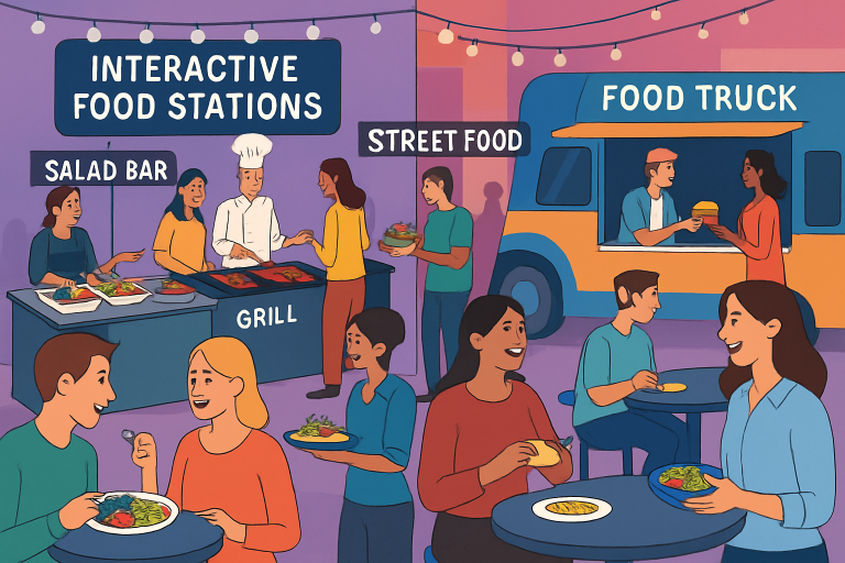 The rise of food trucks and mobile catering has introduced new levels of flexibility and creativity to the dining experience at events. Food trucks can be positioned outdoors or indoors, offering gourmet street food or ethnic specialties that may be hard to replicate in a traditional kitchen. They encourage a more informal and social atmosphere while giving guests plenty of choices. From festivals to private parties, mobile catering accommodates various dietary needs and is ideal for creating a memorable, on-trend vibe.